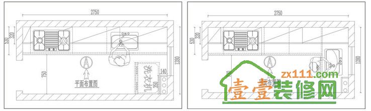装修比较成功的范例,如果按照他原来的“一”字型布局,水槽和灶台之间的操作台较挤,洗衣机上面的地方也浪费了,后来调整过来把水槽放在窗前,水槽与灶台之间料理台空间宽敞了,也增加了很大的实用性。看两种布局的比较(2):
